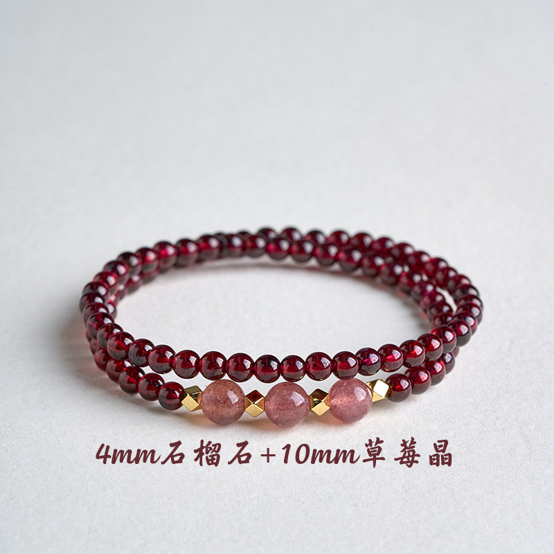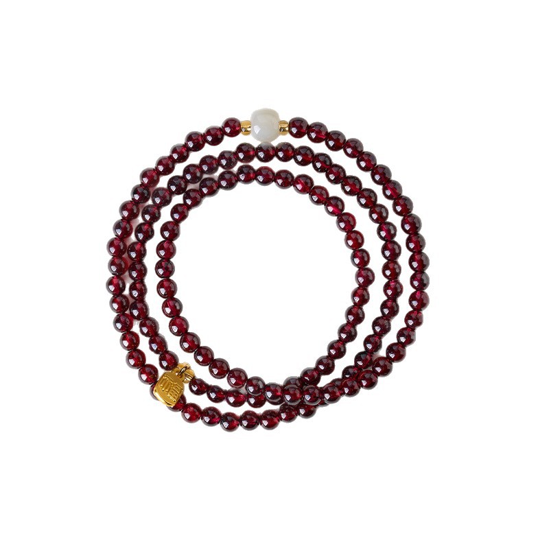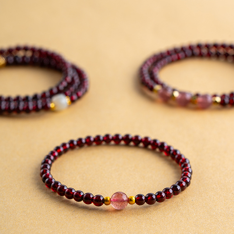Single circle garnet (with strawberry crystal beads) ,Double circle garnet (with strawberry crystal beads) ,Triple circle garnet (with Hetian jade barrel beads) ,Red gift box ,Green gold gift box ,Love gift box + garnet Hetian jade bracelet  |