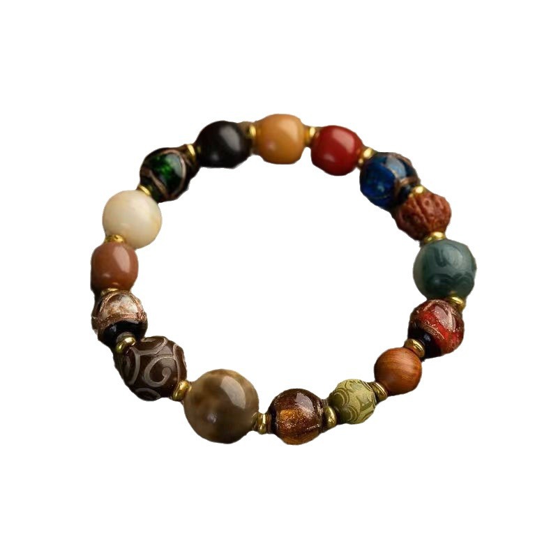 Five Elements Transfer Pearl Duobao Natural Bodhi Bracelet Five Color Fragrant Grey Glazed Duobao Pearl Ethnic Thuja Wooden Bracelet