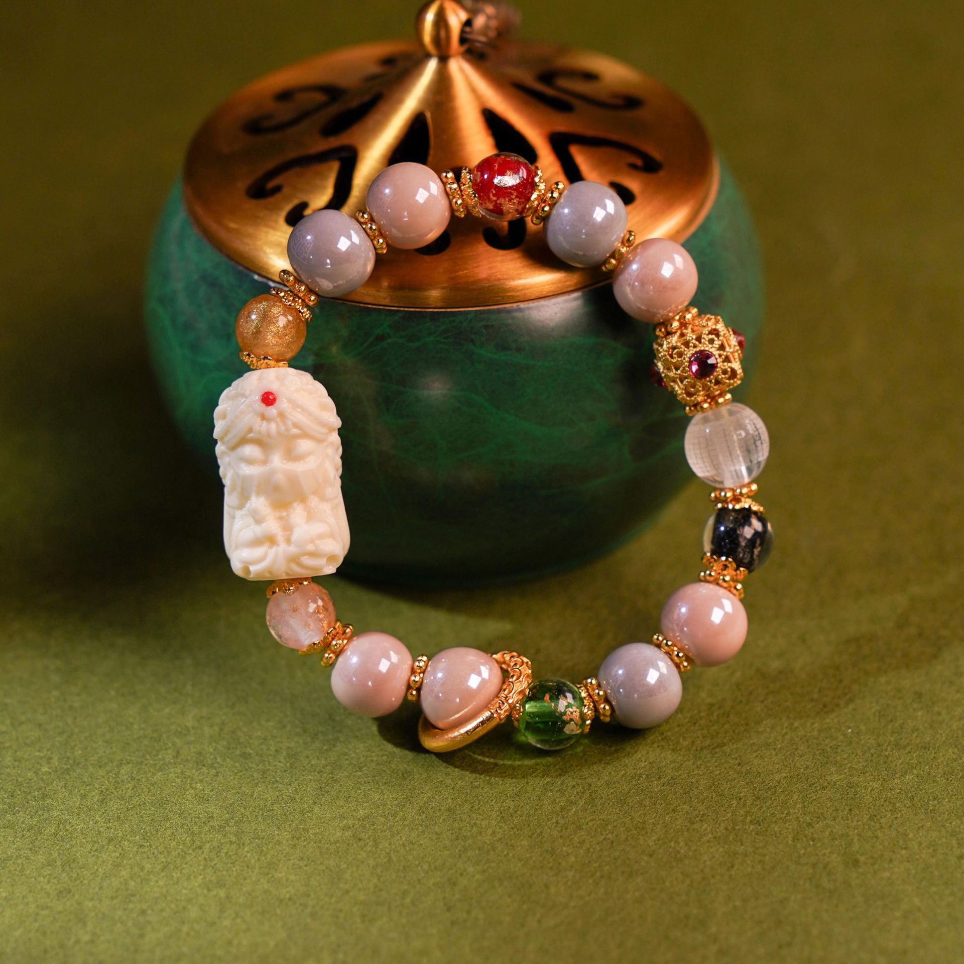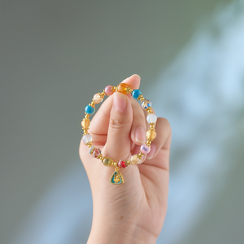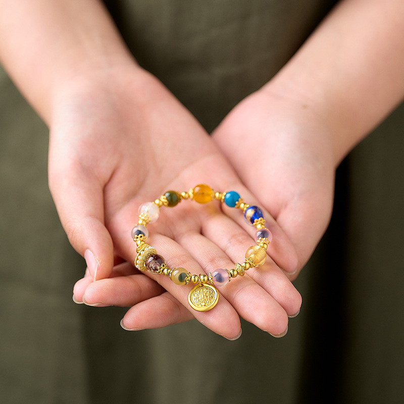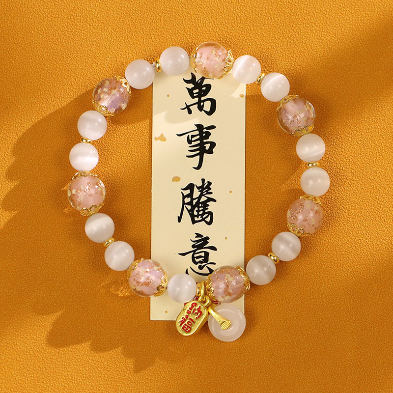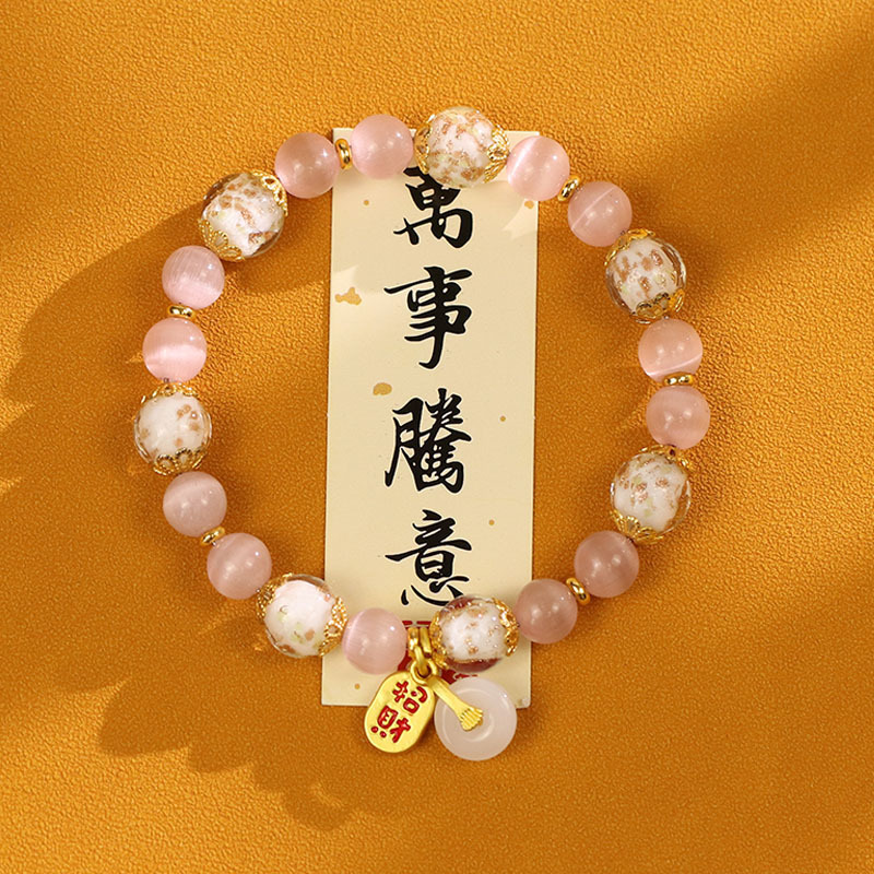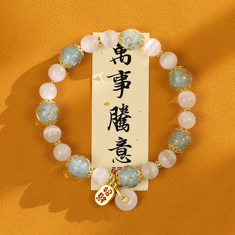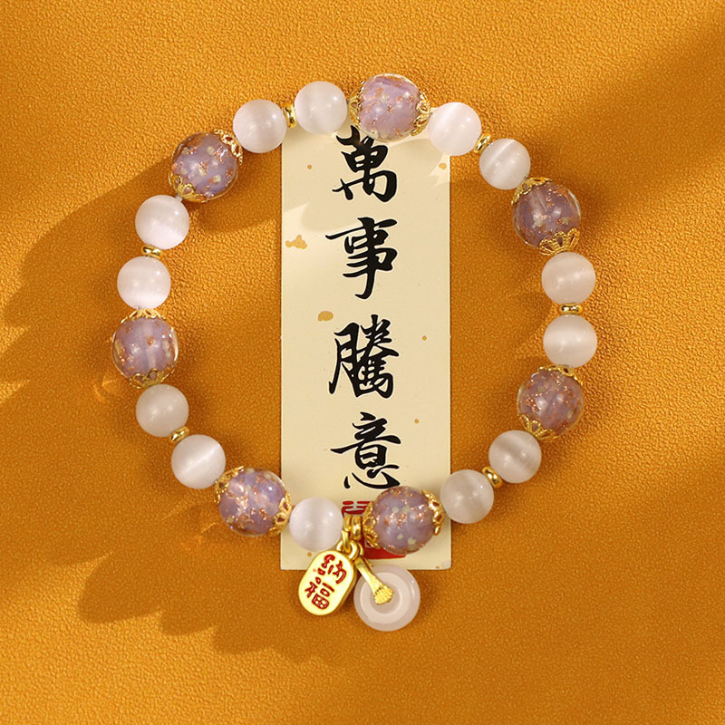 Incense Ash Glass Bracelet for Women Bringing Fortune and Treasures Chinese Style Cat’s Eye Crystal Bracelet Transfer Beads