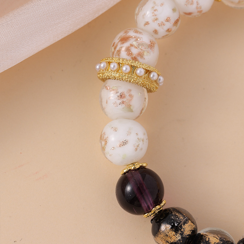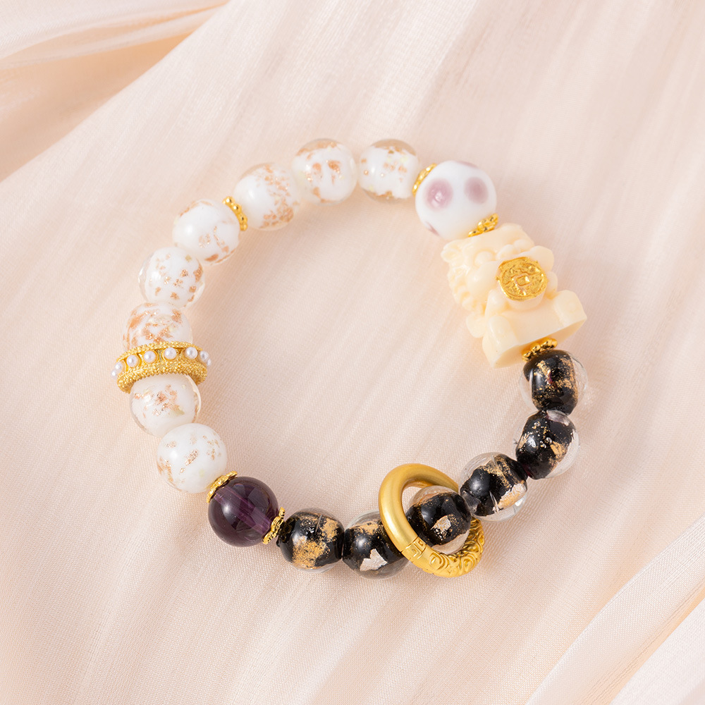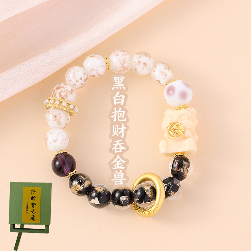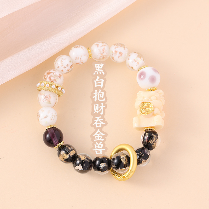 Fragrant Grey Glass Porcelain Beads Colorful Porcelain Bracelet Black Gold Foil Treasure Treasure Gold Beast Ivory Fruit Crystal Running Ring Women’s Bracelet