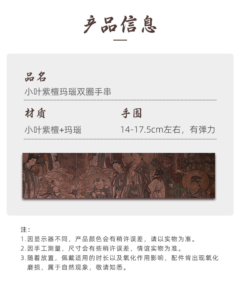 Fuyao Wutai double circle bracelet small leaf red sandalwood with gray agate round bead bracelet
