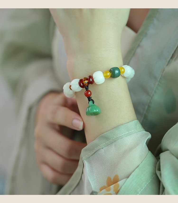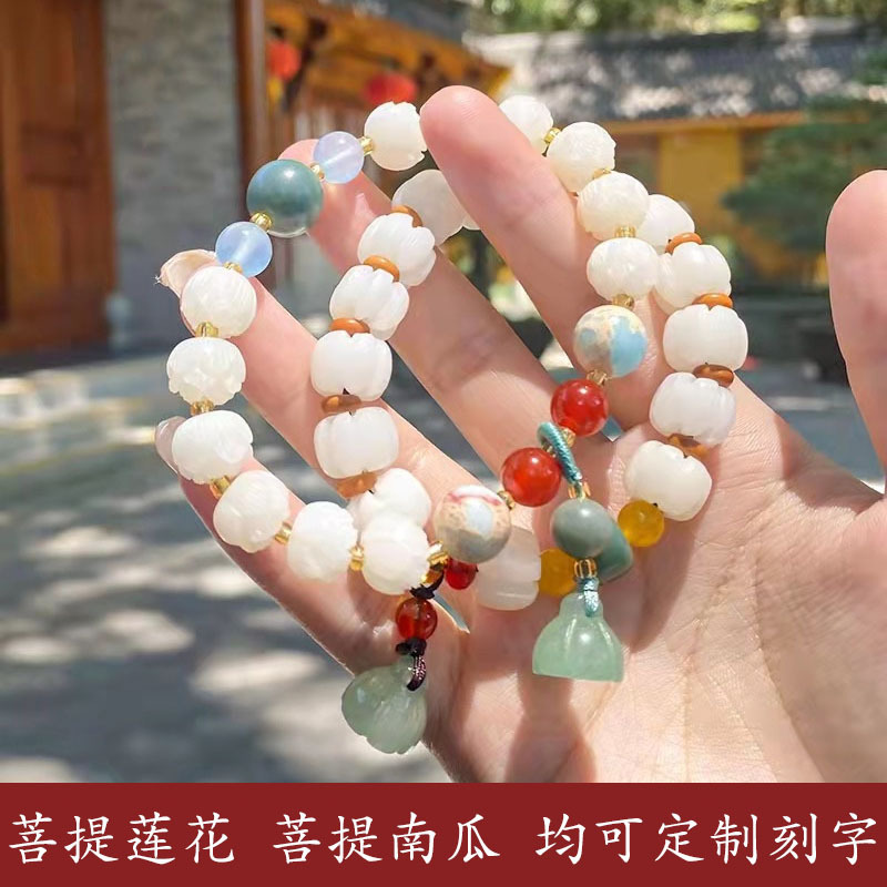 Hangzhou Faxi Lotus White Jade Bodhi Handstring Bodhi Handstring Buddha Beads Duobao Lotus Pot Peace Good Luck Bracelet