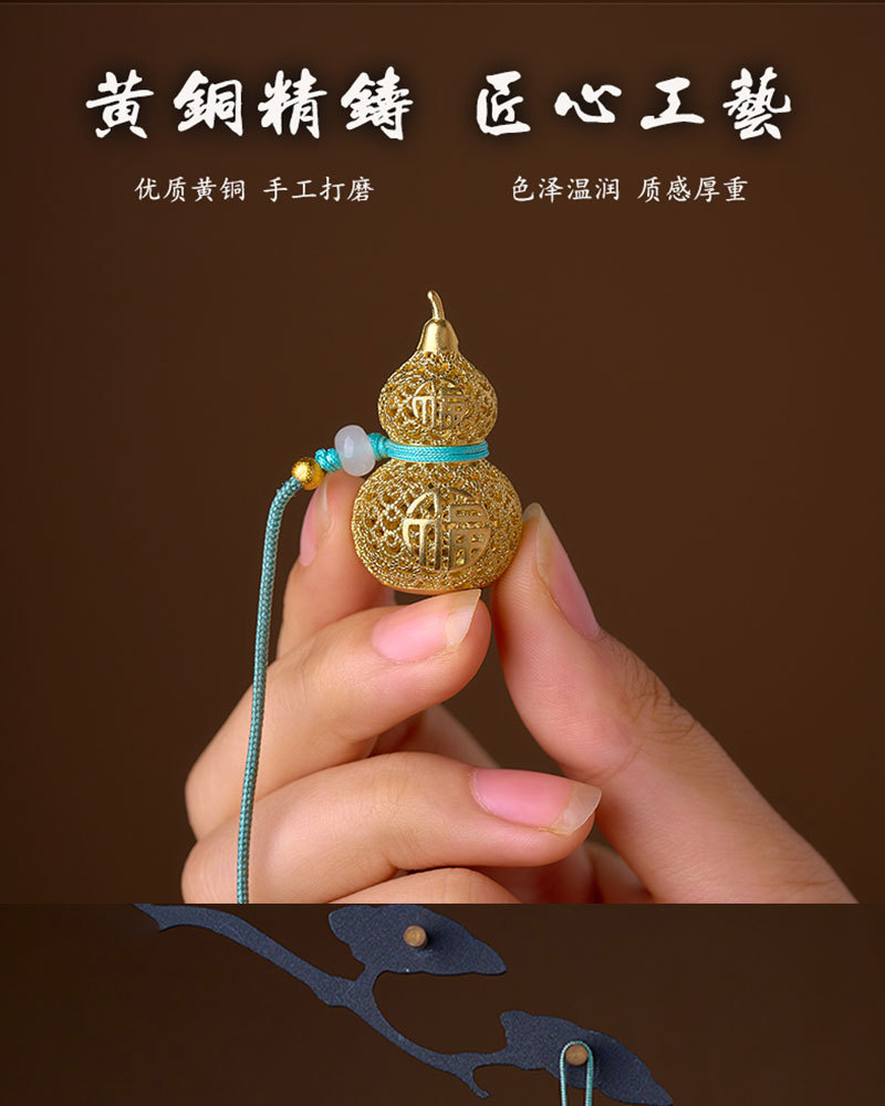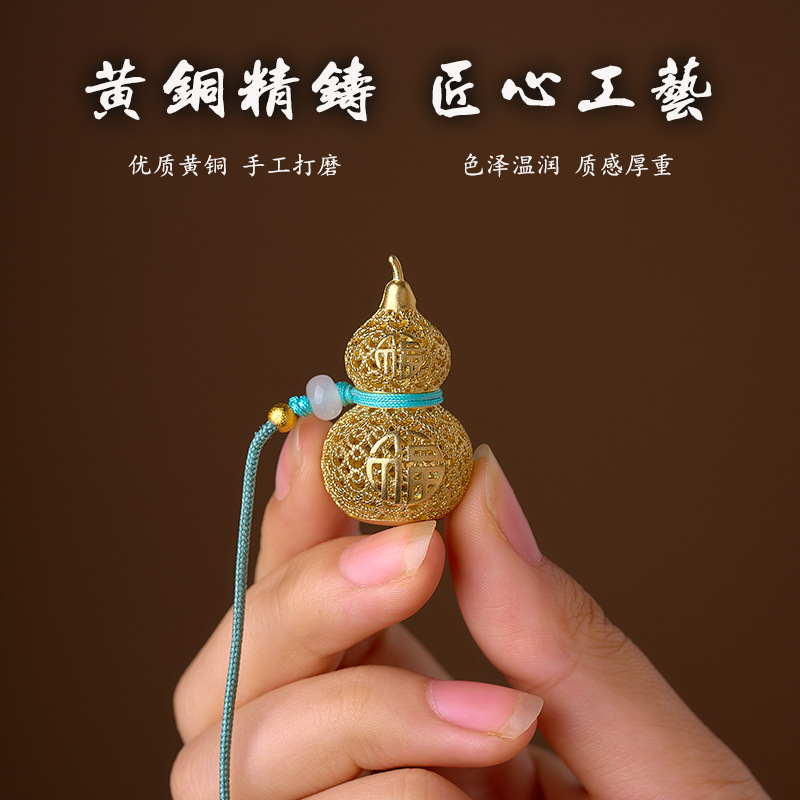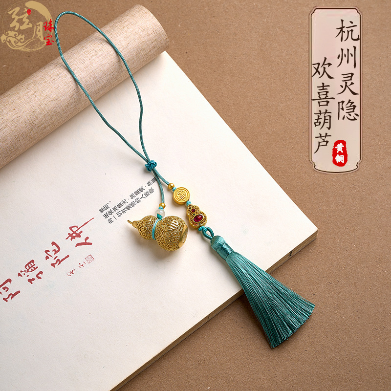 Hangzhou Lingyin auspicious gourd bag pendant jewelry brass hollow gourd car pendant scenic area temple cultural and creative