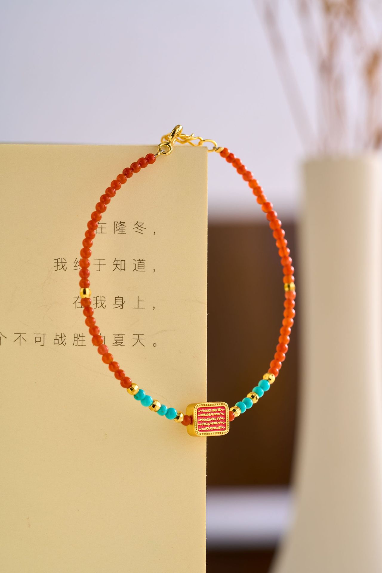Hangzhou Lingyin New Natural Agate South Red Five Sutra Bracelet This Year Lucid Turquoise Bracelet
