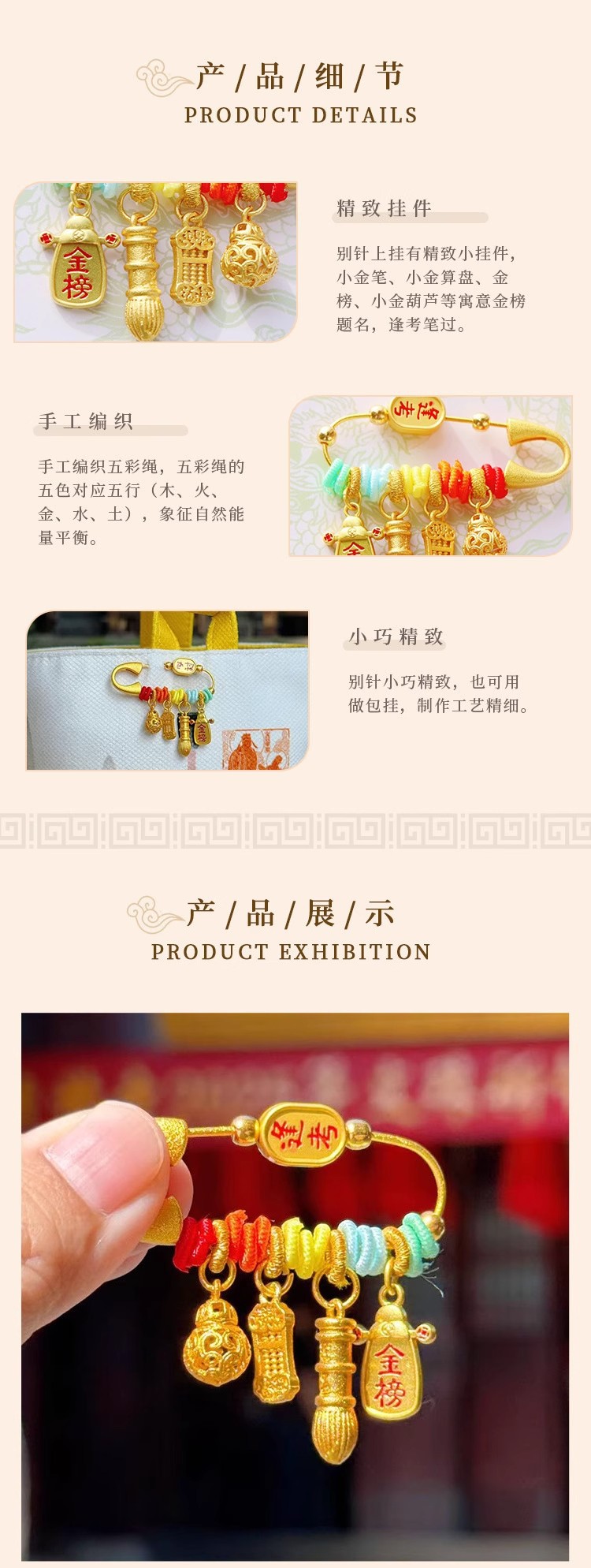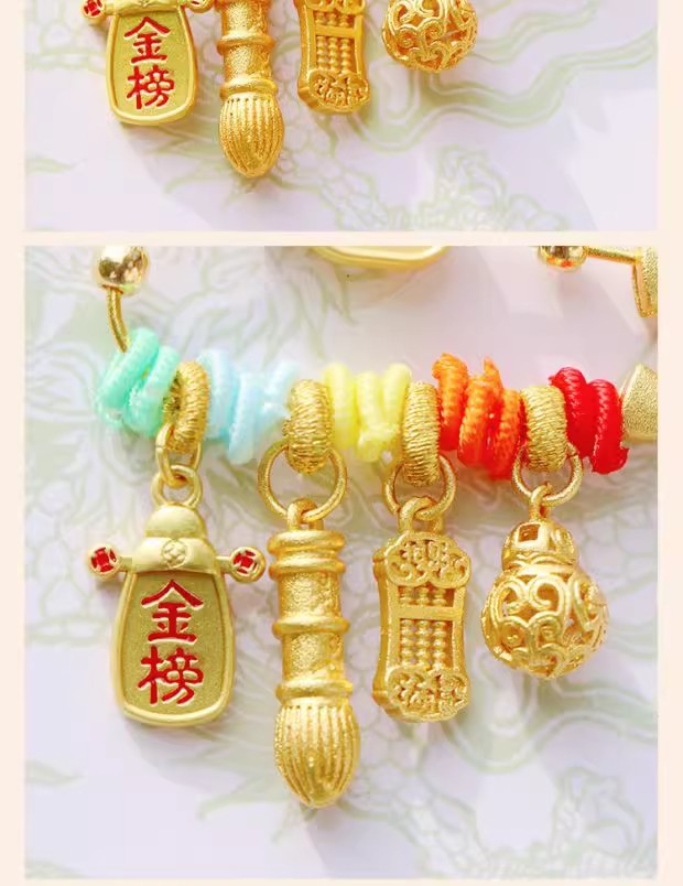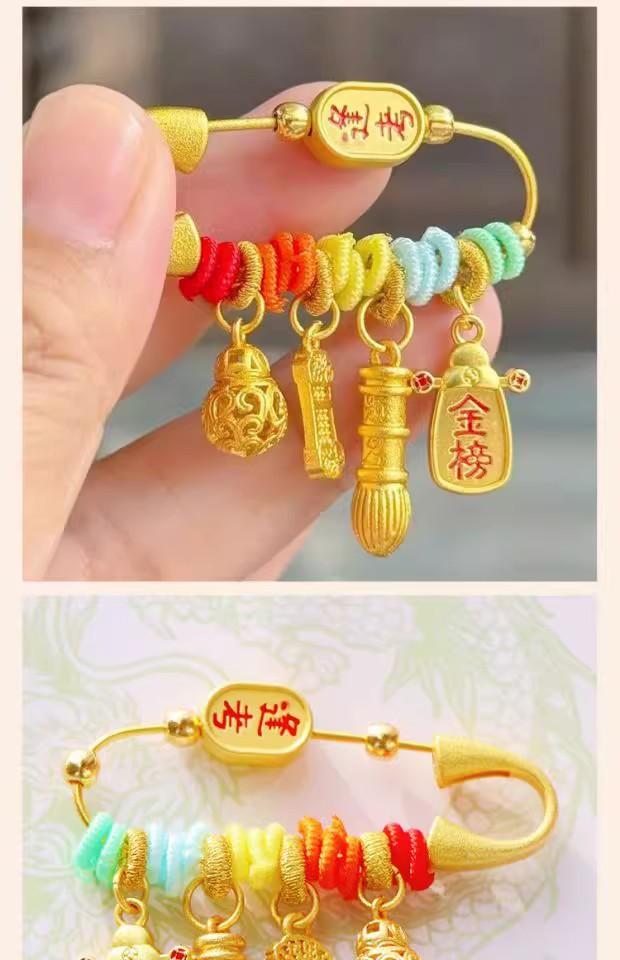 In the traditional concept, the baby’s anti-shock pendant must be available, which means that the baby is safe and blessed. At the same time, the five-color silk thread is used to ward off evil spirits, and it also has the beautiful meaning of praying for Najib: a small brooch, a big blessing, and wishing the baby peace and happiness all the year round.