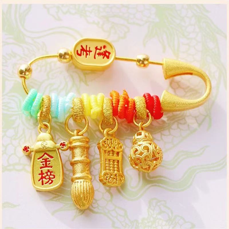 In the traditional concept, the baby’s anti-shock pendant must be available, which means that the baby is safe and blessed. At the same time, the five-color silk thread is used to ward off evil spirits, and it also has the beautiful meaning of praying for Najib: a small brooch, a big blessing, and wishing the baby peace and happiness all the year round.