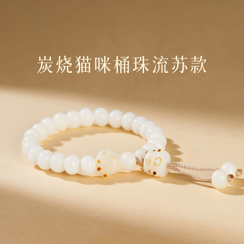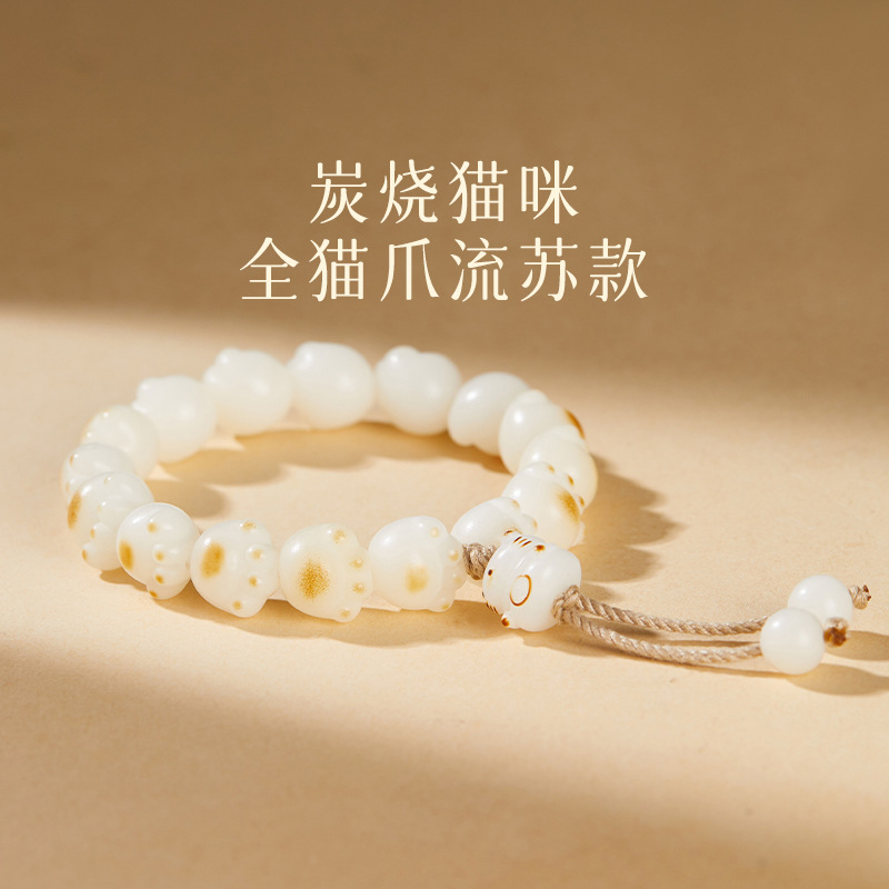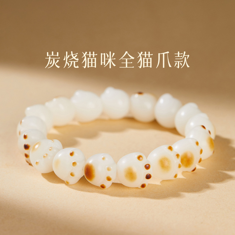 Natural charcoal burning cat claw cat bodhi hand string hand female white jade bodhi child around finger soft text play bracelet