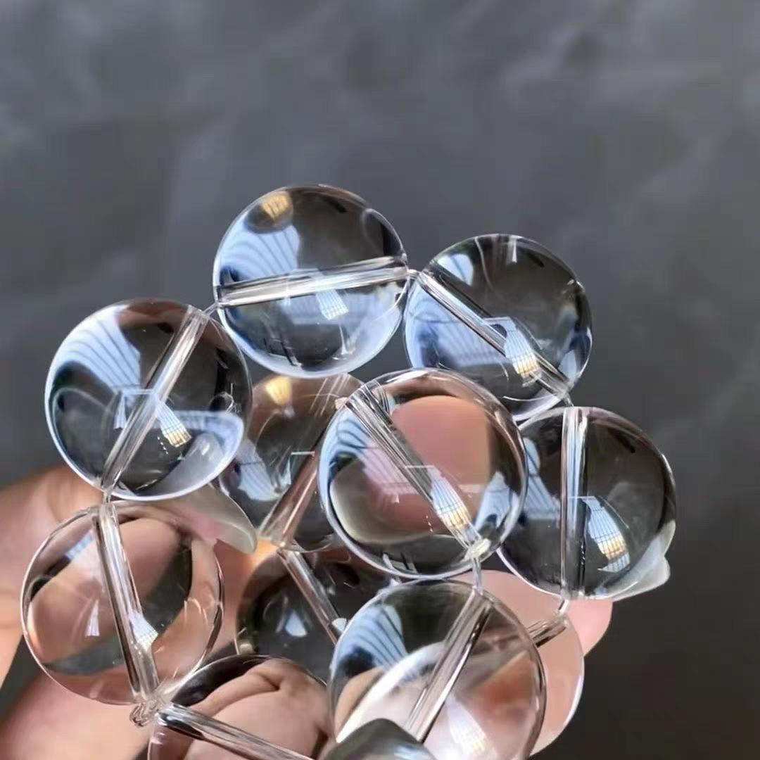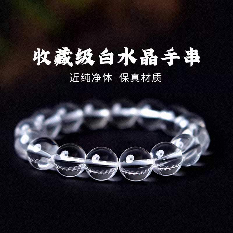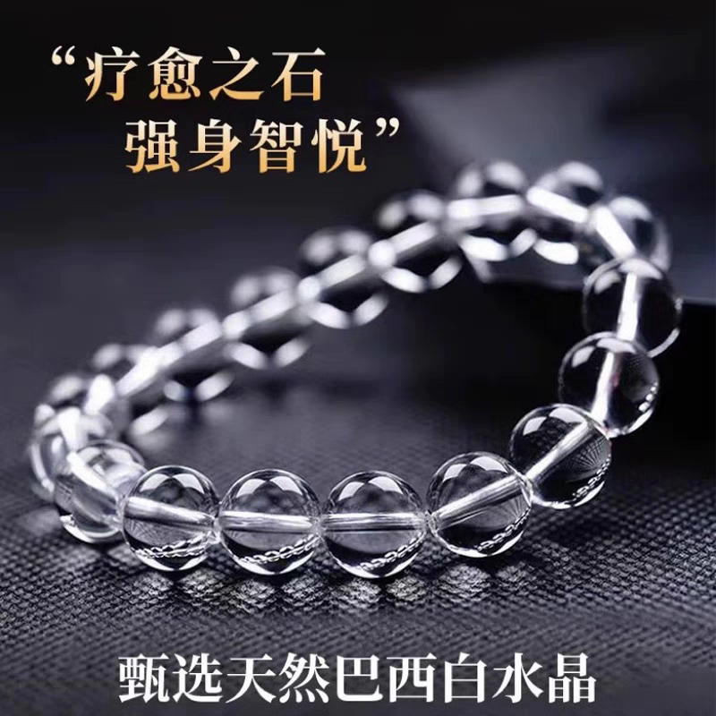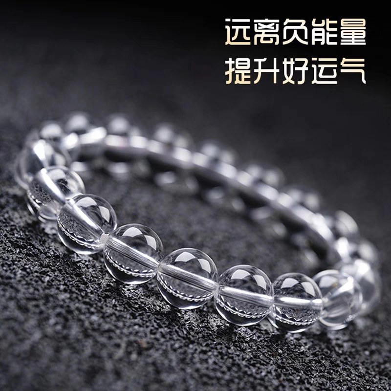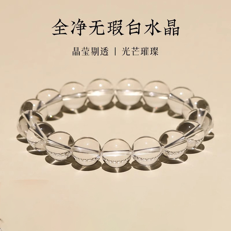 Natural Piezoelectric Optimized White Crystal Plain Ring Bracelet for Women Brazilian Raw Stone Loose Beads Full Body Ice Transparent Bracelet for Men and Women