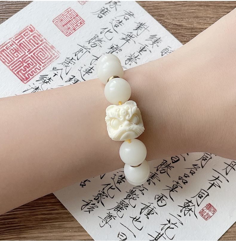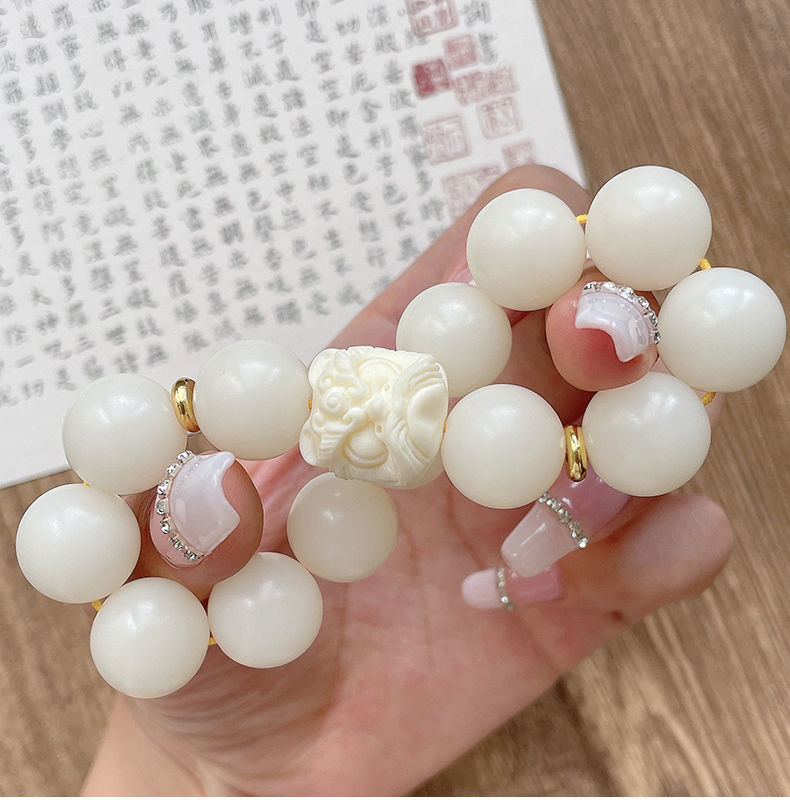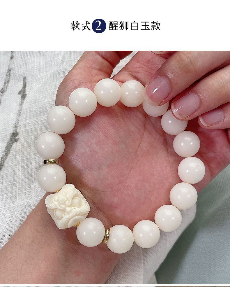 Natural white jade bodhi bracelet ivory fruit lion dance bracelet female bodhi seed writing beads Buddhist beads