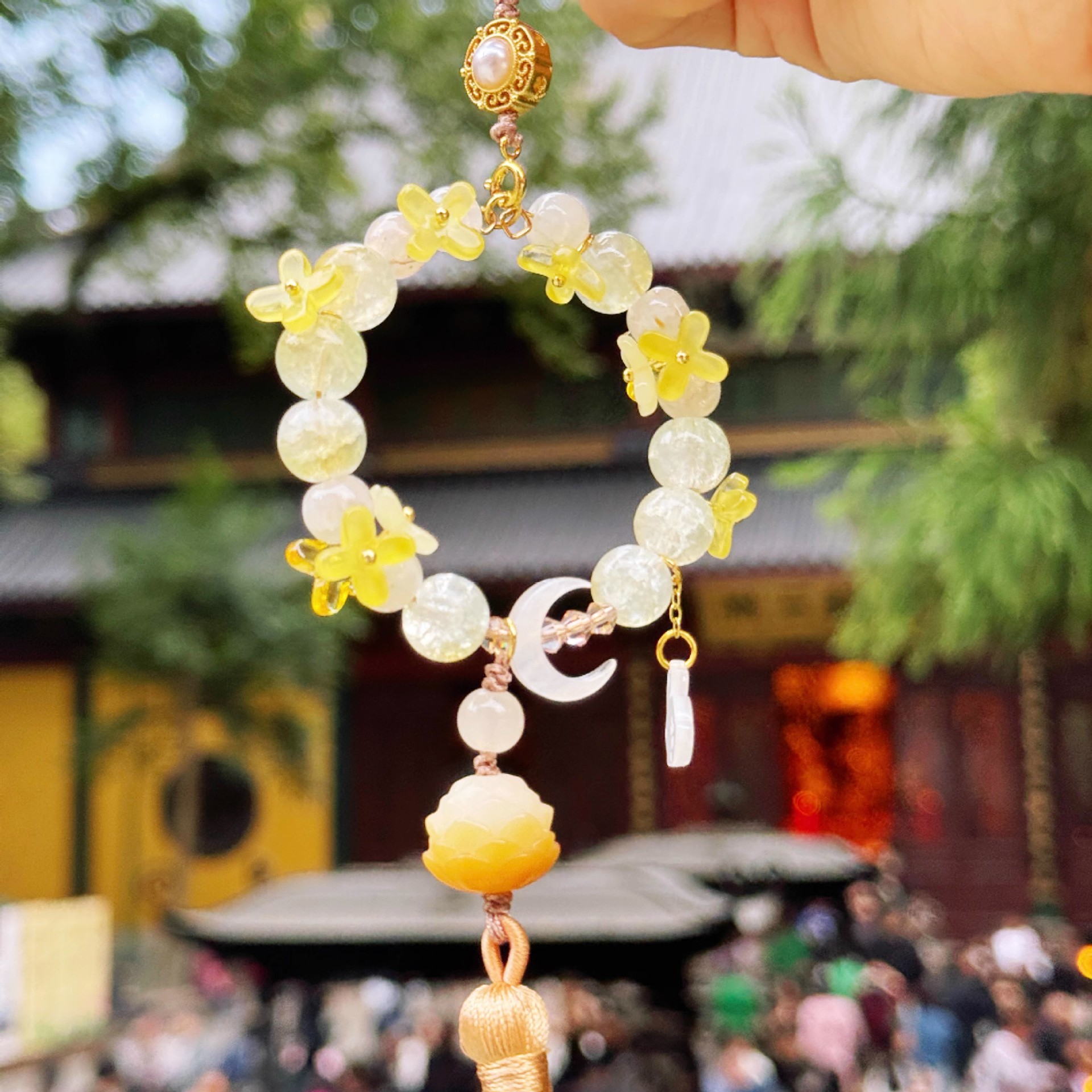 【Rich Osmanthus】 Hangzhou Lingyin Temple Rich Flower Jade Rabbit Fortune and Treasure Amulet New Chinese Bodhi Car Pendant