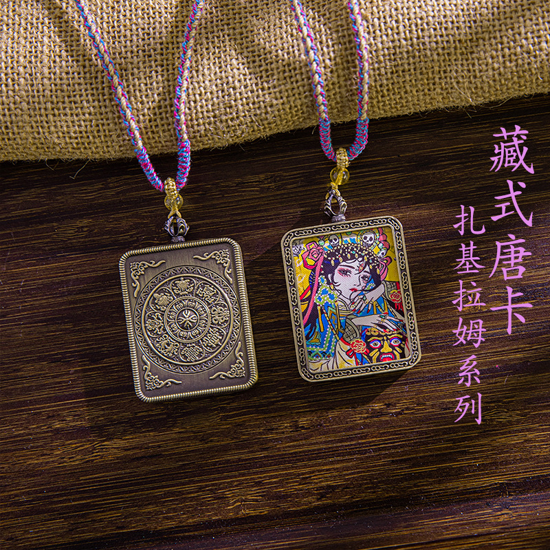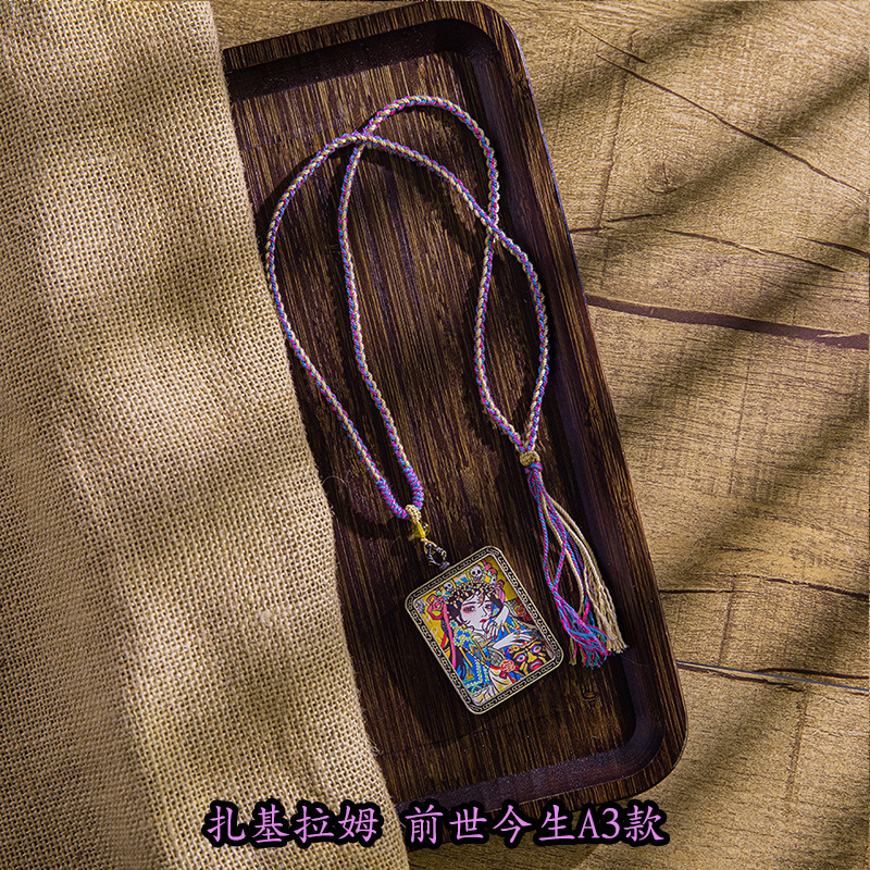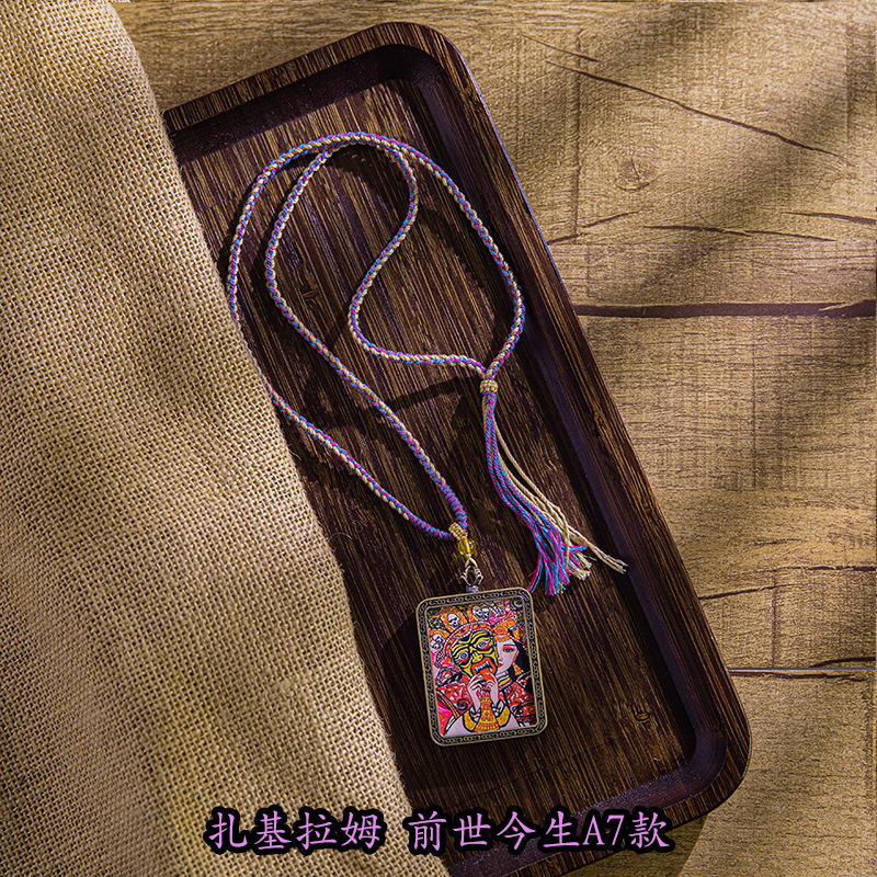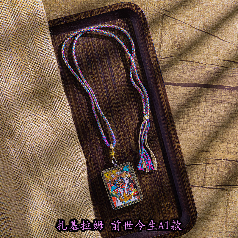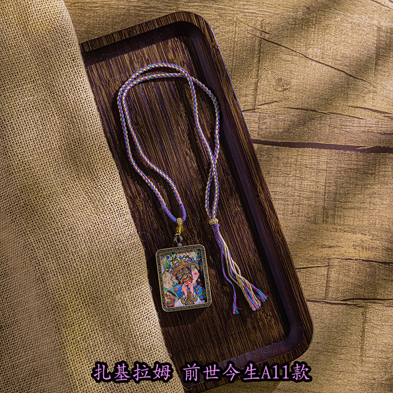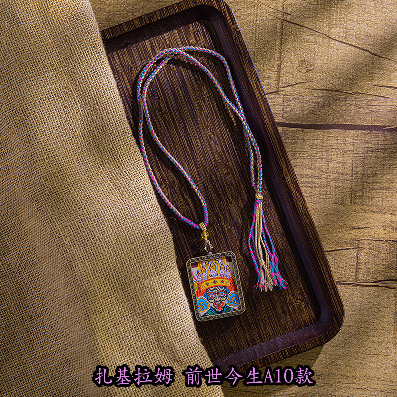 Tibetan Zakilam Past and Present Thangka Pendant Woolen Chain Unisex Necklace Benmingnian Body Protection Card