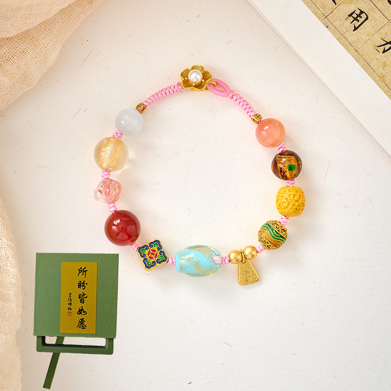 Twelve Treasures Yanyuan South Agate Red Bracelet Chinese Style Duobao Glass Fortune Bracelet